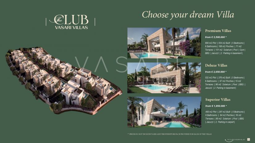 The Club Vasari Villas to ekskluzywna kolekcja 14 luksusowych willi z członkostwem w nowo odnowionym Klubie Towarzyskim, zaprojektowanych w nowoczesnym, a zarazem wyjątkowo eleganckim stylu. Inwestycja wyróżnia się wysoką jakością wykonania, zastosowaniem materiałów najwyższej klasy oraz znakomitą lokalizacją. Położona jest w sercu prestiżowego El Campanario Golf & Country Club, otoczona przyrodą, zaledwie 1 km od plaży i 10 minut jazdy samochodem od Puerto Banús i Marbelli. W okolicy znajdują się wszystkie niezbędne usługi, aby cieszyć się komfortowym i spokojnym życiem: supermarkety, apteki, banki, międzynarodowe szkoły i wiele innych.